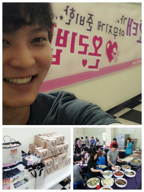공개된 사진 속엔 환하게 웃고 있는 주원의 사진과 함께 팬들이 보내 준 출장뷔페를 맛있게 먹고 있는 스태프들이 보이고 있다.