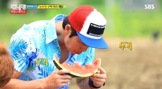 정우성의 활약에도 불구, 첫 번째 라운드에서는 광수의 `먹방 스피드`에 힘입어 김종국 팀이 승리를 차지했다. (사진=SBS `런닝맨` 화면 캡처)