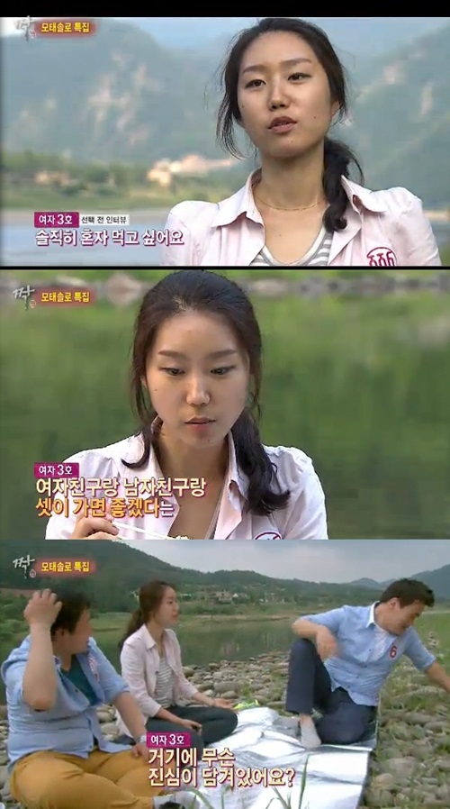 그러나 남자4호와 6호의 선택을 받은 여자3호는 남자들과 자리에 앉은 후에도 "혼자 먹고 싶었다"고 거듭 강조했다.
