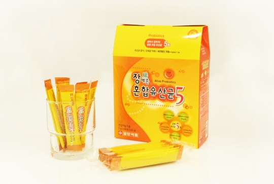 ‘장에존 혼합유산균5’는 발효중인 유제품과 건강한 장에서 많이 볼 수 있는 5종의 혼합유산균들이 유산(젖산)과 생리활성물질을 내어 유해균을 억제하고 건강에 유익한 유산균들을 증식하는데 도움을 주는 프로바이오틱스 건강기능 식품.