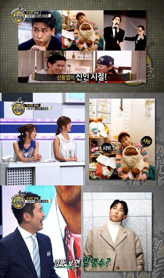 신동엽의 데뷔 초 사진을 본 출연진들은 "지금이 낫다" "박명수 같다"며 놀렸다. 그러자 신동엽은 "잘생긴 박명수다"라고 스스로를 두둔해 웃음을 자아냈다.