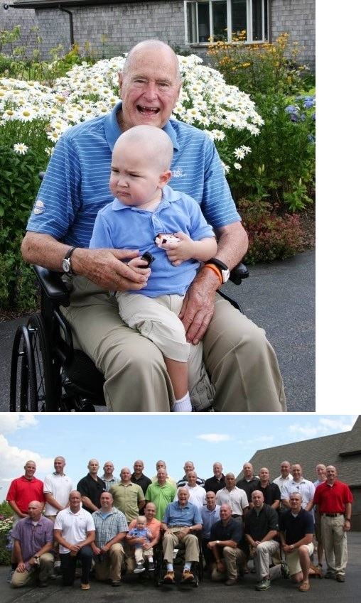 24일 (현지시간) 한 외국 사이트에 백혈병 치료로 민머리가 된 2세 소년 패트릭과 그를 위해 함께 삭발한 조지 허버트 워커 부시 전 대통령의 사진이 게재됐다.