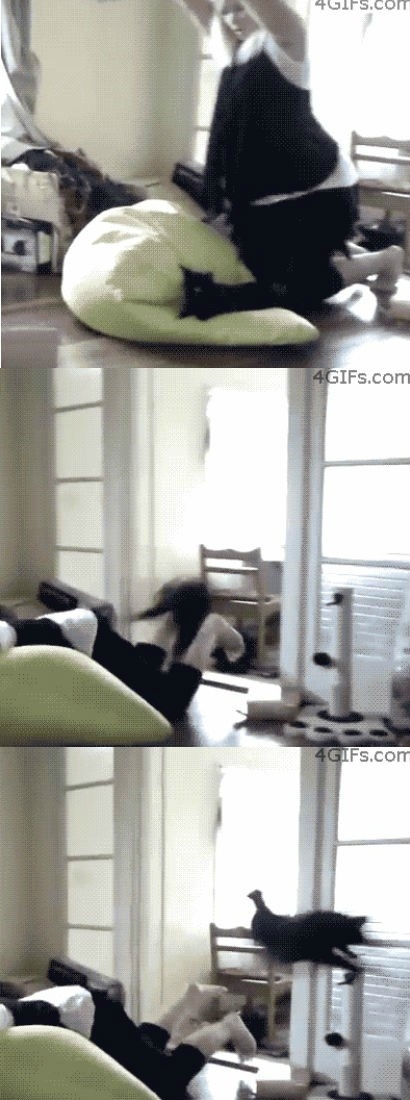 이에 고양이는 반동으로 갑자기 튕겨 올라 화면 밖으로 사라져 `주인의 배신`이라는 제목이 붙었다.