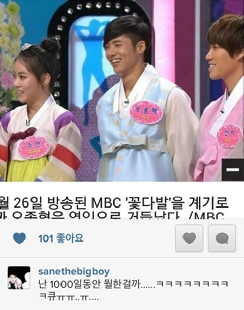 공개된 사진은 지난 2010년 방송된 MBC `꽃다발` 방송을 캡처한 화면으로 한복을 곱게 차려입은 오종혁과 소연 옆에 산이가 함께 서 있는 모습이 담겨 있다.