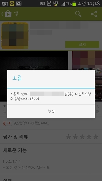 구글 플레이스토어에 들어가서 콘텐츠 다운로드 버튼을 누르면 "오류로 인해 ○○○를 다운로드할 수 없습니다(500)"라는 메시지가 뜨면서 더 이상 진행되지 않고 있어 이용자들은 큰 불편을 호소하고 있다.