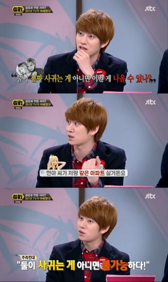 김희철은 “아이돌 선배로 봤을 때 둘이 사귀지 않으면 이건 불가능하다”라고 주장했다.