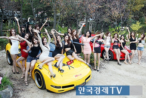 레이싱모델들이 경기도 남양주 자동차까페 `꽃과 어린왕자`에서 열린 `2013 미스디카 아웃도어 모터쇼`에서 포즈를 취하고 있다.