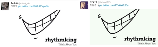 15일 미쓰에이 민, 신보라 범키 등은 자신의 트위터에 "리듬킹"이라는 짧은 글과 웃는 입모양의 사진을 게재해 눈길을 끌었다.