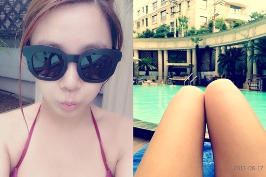 제아는 지난 8월 17일 자신의 트위터를 통해 `유후후~ 시원하군. 오랜만에 수영장~ 히히`라는 글과 함께 사진을 게재했다.