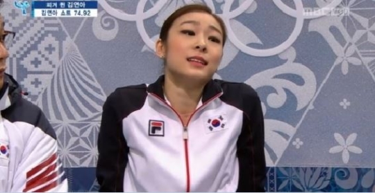 김연아 선수가 자신의 점수에 대해 서운함을 드러낸 것으로 해석한 것이다.