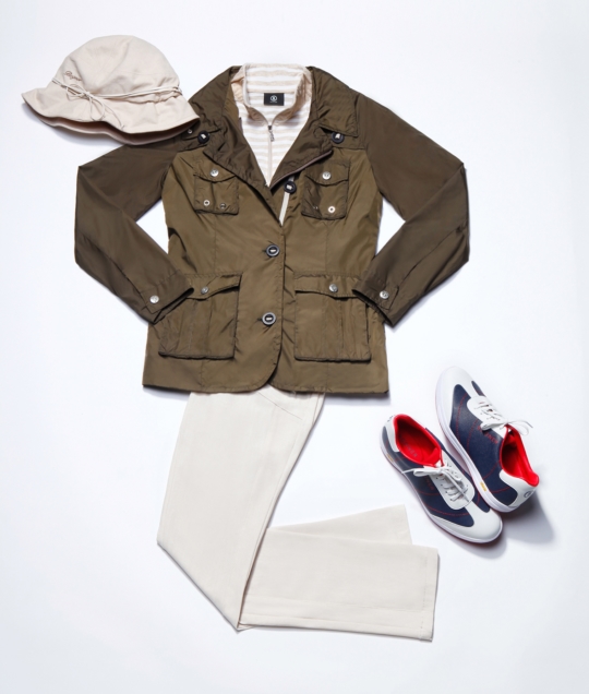 또한 일상에서도 착용 가능한 깔끔한 디자인의 스파이크리스 골프화와 크라운 절개 디테일로 여성미가 느껴지는 모자를 매치하면 더욱 스타일리시한 코디를 완성할 수 있습니다.