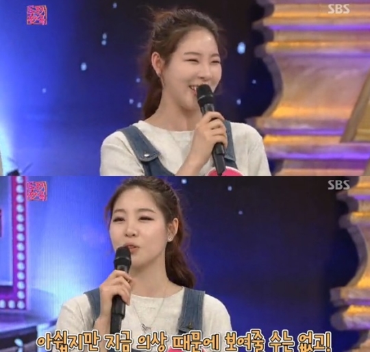 이를 접한 누리꾼들은 "신수지 시구 동작 연습 중이라니 기대된다" "신수지 귀여워" "신수지 정말 매력있다" "신수지 시구 비밀리에 연습중이라니 얼른 보고 싶다" 등의 반응을 보였다.(사진=SBS `도전천곡` 화면 캡처)