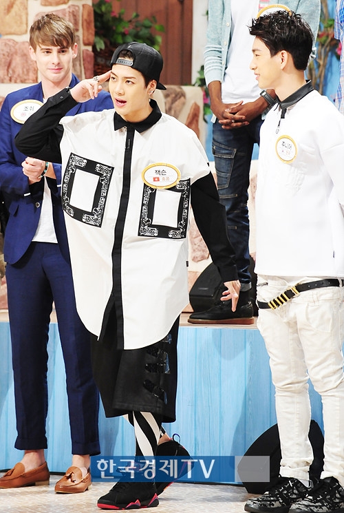 갓세븐의 잭슨과 주니어가 14일 오후 11시 15분 방송되고 오후 경기도 일산 MBC드림센터에서 진행된 `세바퀴` 녹화현장에서 촬영에 열중하고 있다.