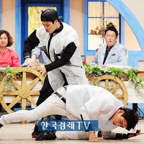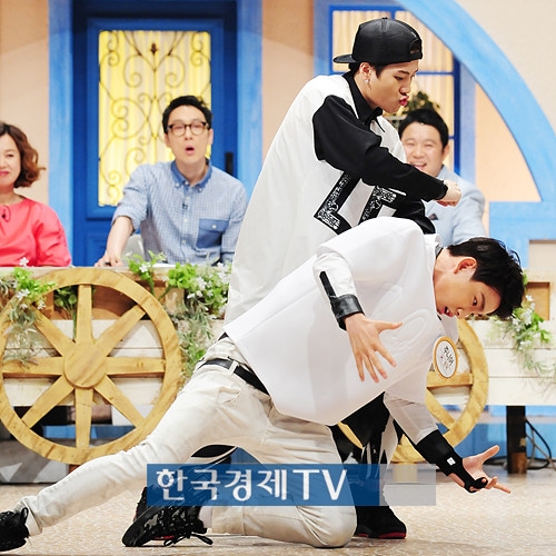 갓세븐의 잭슨과 주니어가 14일 오후 11시 15분 방송되고 오후 경기도 일산 MBC드림센터에서 진행된 `세바퀴` 녹화현장에서 촬영에 열중하고 있다.
