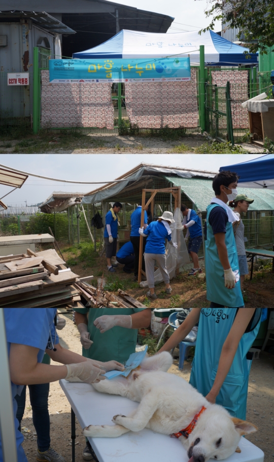 또한 무더위가 지속될수록 질병이 기승을 부리는 여름철 대비를 위해 7명의 수의사분들이 힘을 보태 유기동물들에게 꼭 필요한 맞춤형 봉사활동을 선보였다. 열약환 보호소 환경으로 옴이나 진드기 등 심각한 피부질병을 앓고 있는 강아지들과 새끼 고양이들의 바이러스 치료 그리고 유기견 4마리의 중성화 수술이 일사천리로 진행되어 보호소의 건강하고 상쾌한 여름을 대비했다.