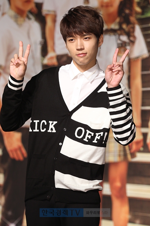 7일 오후 2시 서울 영등포구 당산동 그랜드컨벤션센터 대연회장에서 KBS 2TV 새 금요 판타지 성장 드라마 ‘하이스쿨: 러브온’(이하 하이스쿨) 제작발표회가 진행됐다. ‘하이스쿨’을 통해 인피니트가 아닌 배우로서 모습을 보인 우현은 신인 배우로서 당찬 모습이었다.