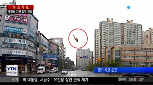 세월호 참사 현장 지원활동을 마치고 복귀하던 소방헬기가 광주 도심 인도에 추락해 탑승자 전원이 숨지는 사건이 일어났다.