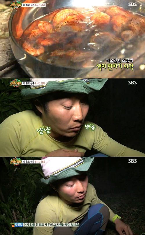 이어 민물 새우를 끓여 맛을 본 김병만은 “이게 간을 안해도 새우의 그 시원한 맛이 있다”며 “생각보다 비리지 않고, 쓴맛도 없다”며 만족감을 드러냈다. 그러며 문득 다른 부족원들이 끼니를 잘 챙겨 먹고 있을지 애잔하게 걱정하는 모습을 보여 눈길을 끌었다.