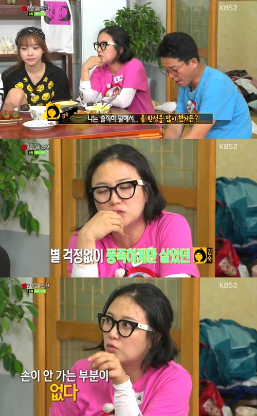 2일 오후 방송된 KBS2 `인간의 조건 2기`에는 여자팀(김숙, 김지민. 김영희, 천이슬)과 남자팀(김준호, 정태호, 김준현, 개코, 김기리)이 전남 강진군 용정마을에서 농촌 봉사활동에 나선 모습이 그려졌다.