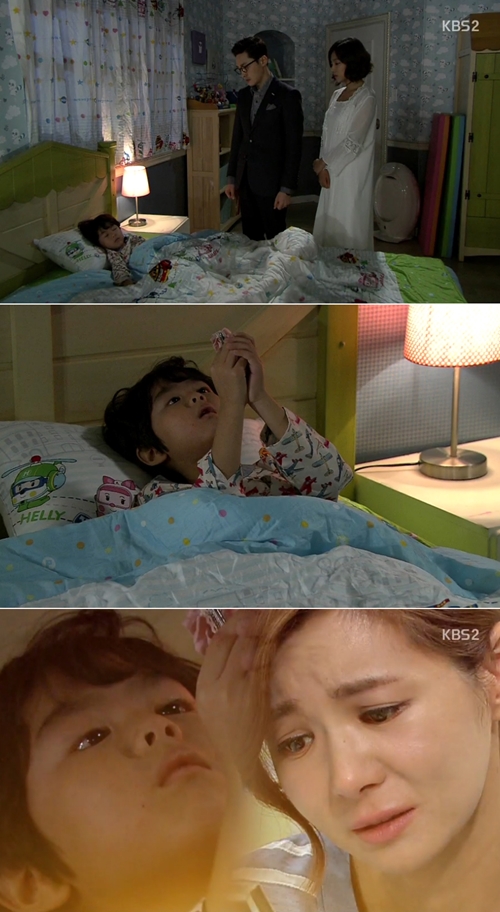 이화영은 진우가 그린 엄마 그림을 빼앗아 들고 "전에 엄마는 가짜 엄마다. 없다"고 소리쳤고 진우는 엄마 그림을 부여잡고 울다가 겁에 질려 오줌까지 지려버렸다. 한바탕 씨름으로 책장에 머리를 찧은 진우를 데리고 정병국(황동주)과 이화영이 응급실에 다녀오던 참이었다.