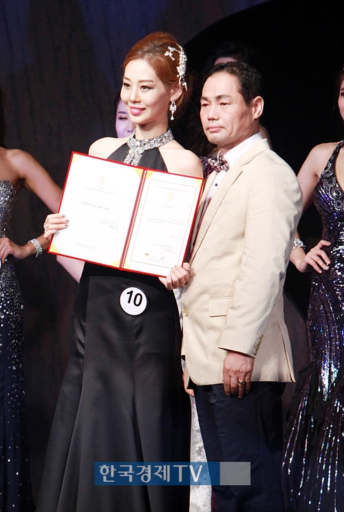 김선민(24)이 27일 오후 서울 한남동 그랜드하얏트서울 호텔에서 진행된 `2014 미스인터콘티넨탈 코리아 파이널`대회에서 아모르 포토제닉상을 수상했다.