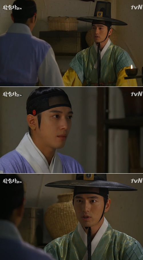 31일 방송된 케이블 tvN `삼총사`(김병수 연출/송재정 극본) 3회에서 소현세자(이진욱)는 달향(정용화)을 불러들였다.