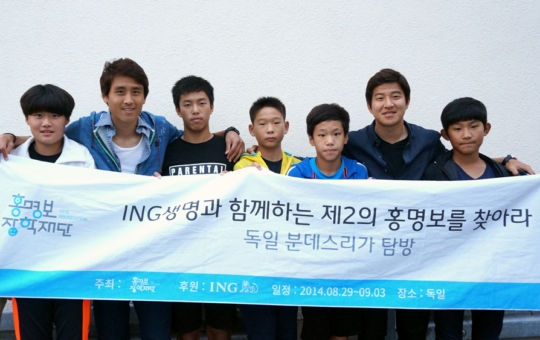 ING생명은 지난해 홍명보 장학재단을 통해 후원한 유소년 축구선수들이 독일을 방문하여 분데스리가 경기를 관람하고 구자철, 박주호 선수와의 만남을 가졌다고 밝혔습니다.