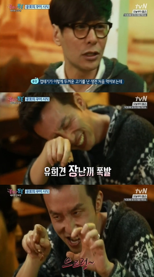 5일 방송된 tvN ‘꽃보다 청춘’ 에서는 페루 여행을 마치고 재회한 윤상, 유희열, 이적의 모습이 그려졌다. 이들은 두달 전 페루 여행을 바로 어제 일처럼 회상하며 웃음꽃을 피웠다. 나영석 PD는 여성 시청자들을 열광케 하는 이유 중에 하나가 세 남자들의 ‘먹방’ 이었다며 페루 음식에 대한 주제를 던졌다.