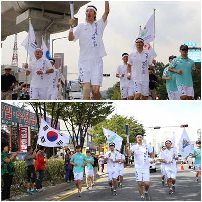 성화 봉송에는 벤쿠버 올림픽 여자 쇼트트랙 은메달리스트 이은별과 KBS 2TV `해피선데이 - 슈퍼맨이 돌아왔다`에서 세쌍둥이 아버지로 맹활약 중인 배우 송일국이 참여했다. 각 군·구에서는 성화가 지나는 곳마다 난타와 사물놀이 등 풍성한 성화 환영행사를 준비했다.