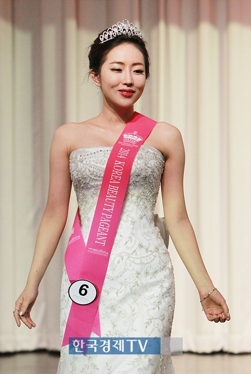 참가번호 6번 김주희가 24일 서울 신사동 더 리버사이드 호텔에서 아시아 최대미인대회 전문 프로덕션 엠프레젠트와 상하이 이데아 프로덕션 공동 개최로 진행된 `한국제일미녀공회 쇼케이스`에서 웨딩드레스 자태를 뽐내고 있다.