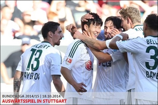 레버쿠젠은 18일(한국시각) 독일 슈투트가르트 벤츠 아레나에서 열린 2014-15 분데스리가 8라운드 원정경기서 손흥민의 2골 1도움에 힘입어 슈투트가르트와 3-3 무승부를 거뒀다.