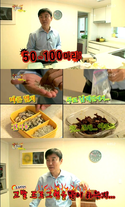 이영돈은 ‘해피투게더’ 제작진을 집으로 초대하고, 자신이 평소 즐겨 먹는 것은 멸치라며 냉동실에서 갖은 종류의 멸치를 꺼내기 시작했다.