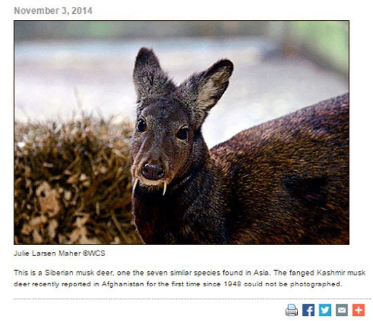미국 과학매체는 3일(현지시간) 국제야생동물보존협회 아시아지부 연구진이 아프가니스탄 북동부 산림지역에서 카슈미르 사향 노루를 포착했다고 보도했다.