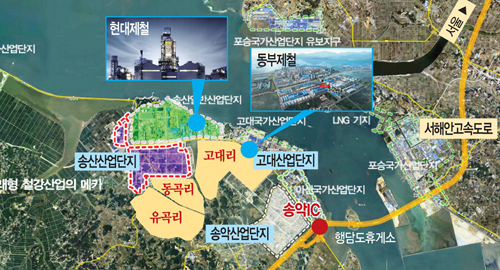 현대제철을 중심으로 거대한 공장들이 빼곡히 들어서면서 관련업체 및 외국기업의 입주가 진행될 예정이다. 대형 철강업체 6곳이 입주해 매년 공장이 100여개씩 몰리고 있는 상황이다.