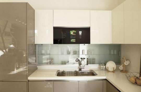 스마트 퍼니처는 주방가구 벽면과 화장대 거울에 정보통신기능(ICT)을 넣어 실시간으로 정보를 제공하는 가구입니다.