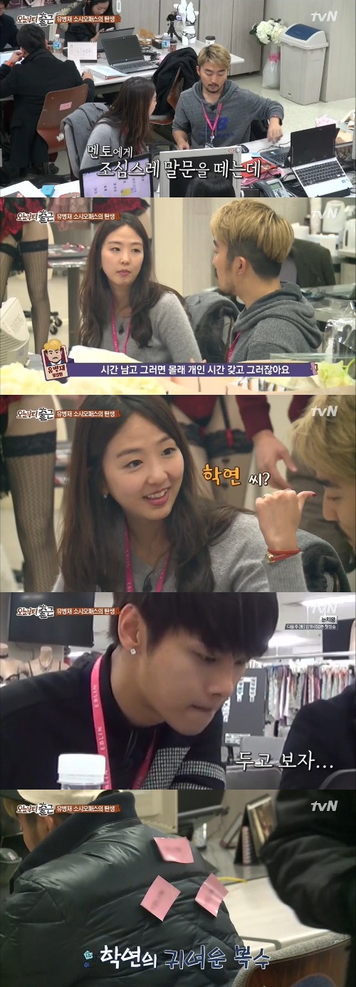 12월 11일 방송된 tvN 초근접 직장 리얼리티 ‘오늘부터 출근’ 13회에서는 신입사원으로 언더웨어 회사에서 근무하는 유병재와 빅스 엔(이하 차학연)의 경쟁하는 모습이 방송됐다.