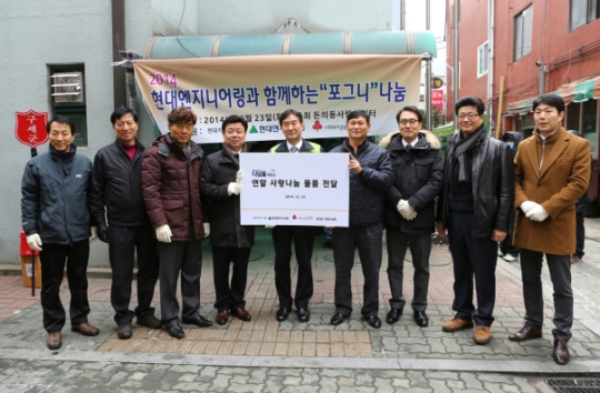 한편, 현대엔지니어링은 해마다 연말이 되면 지역사회 주민들의 따뜻한 겨울나기를 위해 지난 2009년부터 연탄배달봉사를 이어오고 있으며, 올해 11월에는 자선바자회 수익금으로 종로구 쪽방촌 주민들을 위한 나눔의 쌀을 기부하며 이웃사랑을 실천한 바 있다.