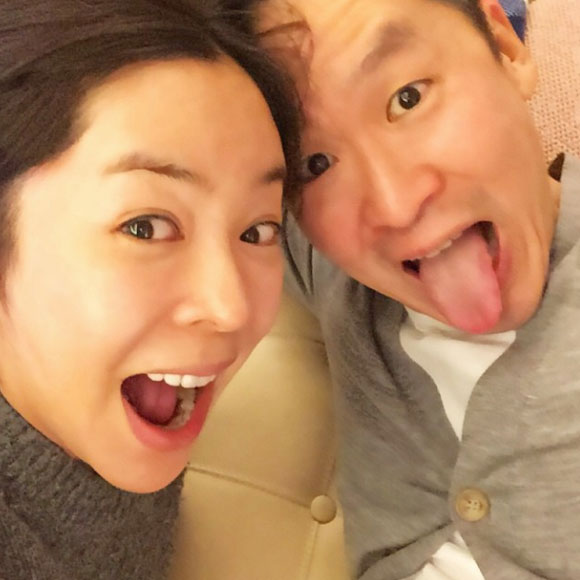 공개된 사진에는 장난기 가득한 표정을 지으며 카메라에 바짝 얼굴을 대고 있는 이혜영과 그의 남편의 모습이 담겨 있다.