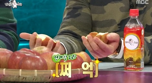 이에 오승환은 악력만으로 사과를 가로로 쪼개겠다고 말한 뒤, 묘기에 가까운 8조각으로 사과 쪼개기에 성공해 MC들의 놀라움을 자아냈다.