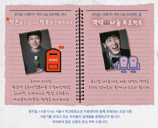 뮤지컬 ‘사춘기’가 ‘서울시 학교 밖 청소년 지원센터’와 함께 ‘착한 나눔 프로젝트’를 진행한다.
