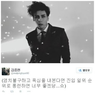 이어 종현은 `염치불구하고 욕심을 내본다면 진입 1위 순위로 롱런하면 정말 좋겠다`라는 바람을 전하기도 했다.