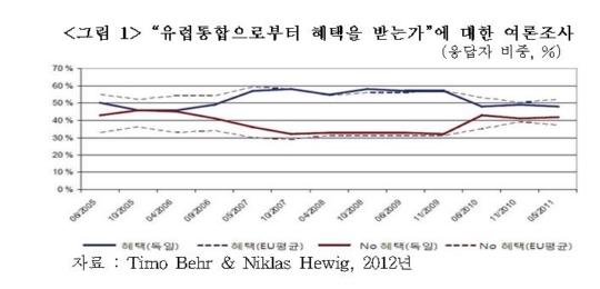 외형상으로 가장 혜택을 많이 받고 있는 것으로 알려진 독일 국민들도 60%를 넘지 못하고 있다, 그만큼 유로존 유지를 위해 독일 국민들이 희생이 크기 때문이다. 그리스를 비롯한 경제 취약국 국민들은 유럽통합에 대한 만족도가 더 떨어지는 것으로 나타났다. 이 때문에 유럽 경기나 유럽통합 앞날이 어두워 보일수록 유로존 탈퇴가 유럽 국민들로부터 쉽게 공감을 얻을 수밖에 없다.