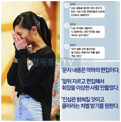 이에 대해 경찰수사단계에서도 클라라는 "회장님에게 사과하면 계약해지를 시켜준다는 말을 믿고변호사가 시키는 대로 사과를 했을 뿐이다. 그러나 계약해지를 하게 된 성적 수치심 발언 등의 내용은 사실이었다"고 진술하고 관련 카카오톡 문자 등 관련 증거물들을 제출하였던 것입니다.