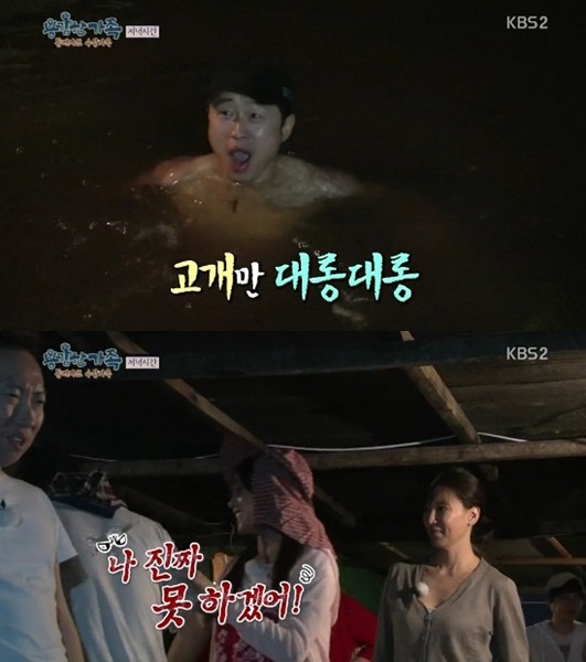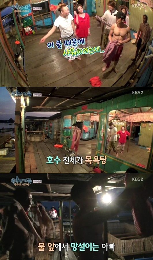23일 방송된 KBS 예능 프로그램 ‘용감한 가족’에서 이문식은 생활배수를 다 버리는 생각만으로도 근질근질한 톤레사프 호수물에 뛰어들어 샤워를 마쳤다.