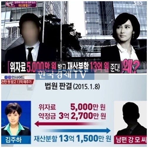 재판부는 재산 분활권과 관련해서 김주하의 명의로 된 재산 27억 원 가운데 A씨가 기여한 13억 1,500만원을 강 씨에게 지급할 것을 선고했다.