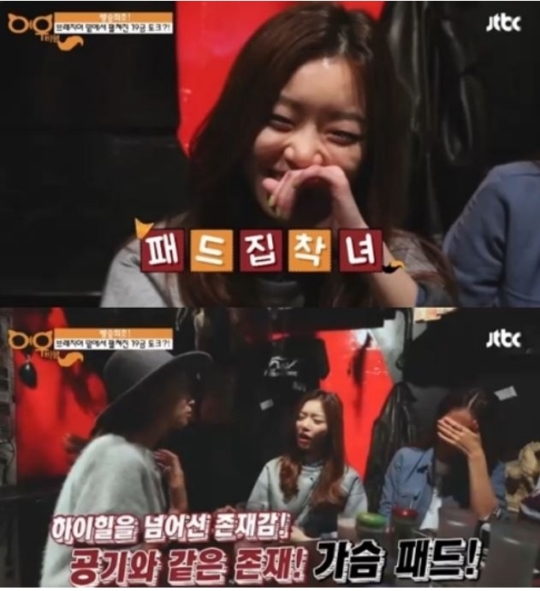 이에 오윤아는 "나도 좀 찔린다. 과거 가슴패드에 집착했다"며 "가슴패드는 나에게 공기와도 같은 존재였다"라고 말해 웃음을 자아냈다.