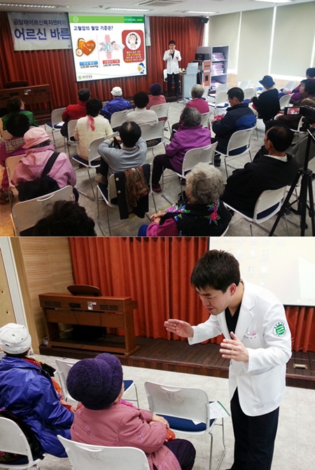 지난 3월 27일, 서울 화곡동에 위치한 곰달래어르신복지센터에서 열린 건강강좌 `쉽게 알아보는 고혈압과 심장질환`이 지역 주민들이 모인 가운데 열렸다.