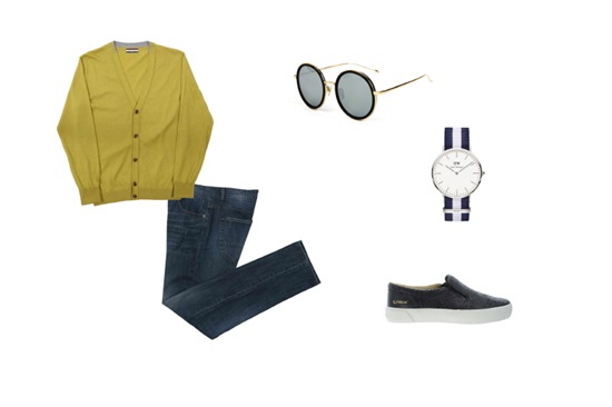 부드럽고 댄디한 남성미를 드러내고 싶다면 머스터드 컬러의 카디건이 제격이다. 이때 하의는 톤 다운된 데님팬츠를 선택해 전체적인 밸런스를 갖추는 것이 관건. 특히 캐주얼하고 경쾌한 봄 패션의 포인트를 연출하려면 데님팬츠 끝을 두 번 정도 롤업하는 것도 좋은 방법이다.