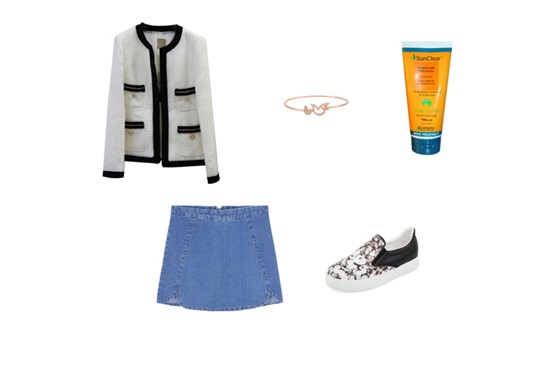좀 더 발랄하고 귀여운 느낌을 주고 싶다면 플라워 프린트가 가미된 슬립온을 매치하는 것이 제격이다. 또 골드 컬러와 사랑스러운 디테일이 가미된 팔찌를 착용하면 벚꽃 데이트 스타일에 정점을 찍어줄 것. 특히 천연 성분의 선 클리어 제품으로 따사로운 햇볕 자외선 차단과 촉촉한 피부 톤을 유지해 청순한 여성미를 강조하는 것이 중요하다.