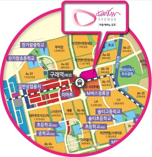 김포도시철도 구래역(가칭)과 복합환승센터, 구래동 중심상업지구와 맞닿아 있어 적지 않은 유동인구가 예상된다. 또 구래지구와 인근 양곡지구에 들어서는 3만2300여 가구가 배후수요로 자리 잡을 전망이다.